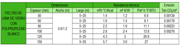 Faces de feltro de lã de vidro com um complexo de polipropileno branco, reforçado com fios de vidro (que atuam como reforço) e papel kraft, que juntos Eles atuam como uma barreira de vapor. Adequado para ser instalado em estruturas metálicas permanecendo visíveis. Ele revestimento reforçado permite que ele seja tensionado durante processo de instalação. Possui aba longitudinal de 10 cm para dar continuidade à barreira de vapor, evitando a passagem do vapor de umidade.